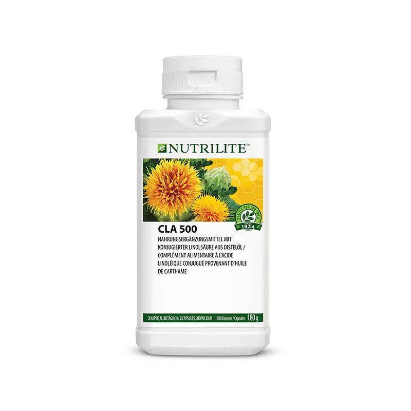 NUTRILITE CLA 500 ist ein Nahrungsergänzungsmittel mit konjugierter Linolsäure (CLA), das aus reinem Distelöl gewonnen wird. CLA kommt in natürlicher Form in Fleisch und Molkereiprodukten vor.